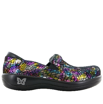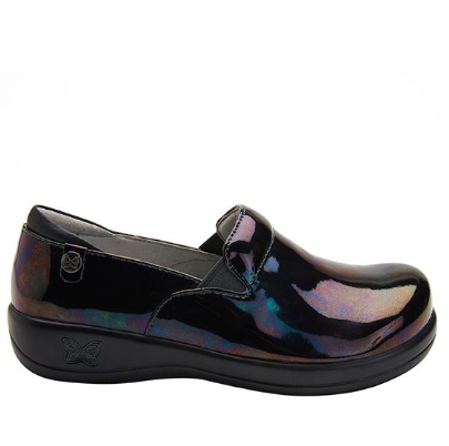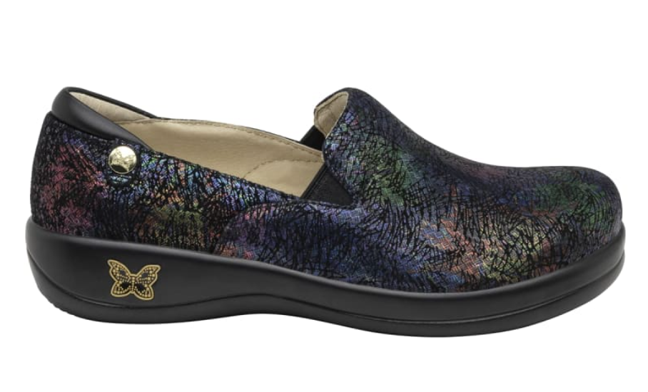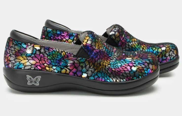 Sometimes you just need a good, simple, comfortable shoe. A shoe that will go with everything. Not to fancy, not to glitzy, just a great shoe. That describes the Keli PRO Black Nappa. It features full foot coverage with a closed back, and a slip resistant outsole as well as stain resistant upper that is lighter weight with a slim silhouette. The elastic goring at the instep and padded tongue provide an extra comfortable fit. Loaded with cork, memory foam and latex, the removable footbed forms to the natural contours of your foot creating a custom fit and amazing comfort.