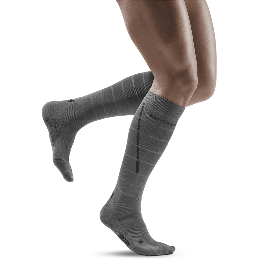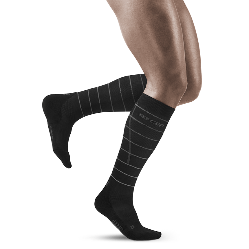 Get 360-degree visibility with CEP's Reflective Compression Socks for Men. Stylish and functional, these knee-high socks provide stability and support with targeted graduated Medi compression. Wear during a run or workout to increase circulation, decrease risk of injury and cramps, or wear afterwards for a quick recovery. These athletic compression socks for women are breathable and moisture-wicking, perfect for running, marathons, basketball, soccer, hiking, travel and more.