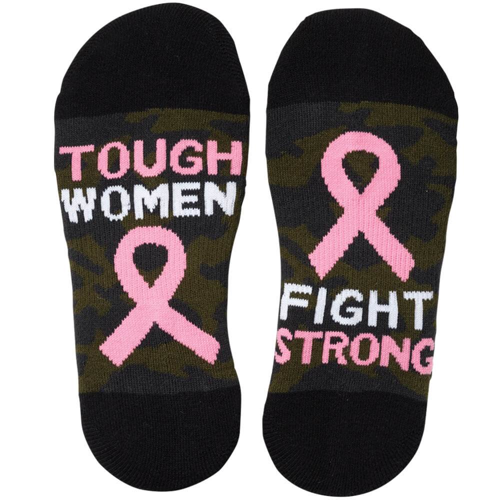 Soles display our message, Tough Women Fight Strong, along with oversized pink ribbons